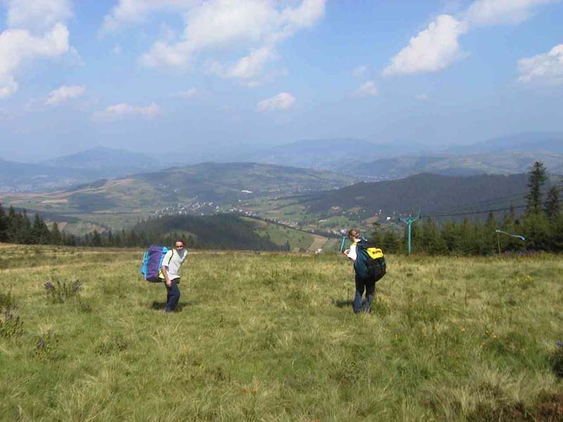 Po dojechaniu na parking pozostawiamy na nim samochód i kierujemy się do stacji wyciągu krzesełkowego. Cena biletu: 6 zł (sierpień 2000). Powrót za darmo, po okazaniu paragonu. Pojedyncze krzesełka, jeżeli są problemy z zabraniem glajta i pilota na jedno, obsługa (bez dalszych opłat) umieszcza plecak na krzesełku za pilotem (jeżeli pilot jest płci męskiej, inni piloci się z niego śmieją...). Po wysiadce i zaopatrzeniu w barze na górze kierujemy się ścieżką na północ, gdzie po 300 metrach otwiera się Polana Jaworzyna z górną stacją nieczynnego wyciągu orczykowego po stronie wschodniej. Z początku mało stroma, przełamuje się w połowie stoku.
